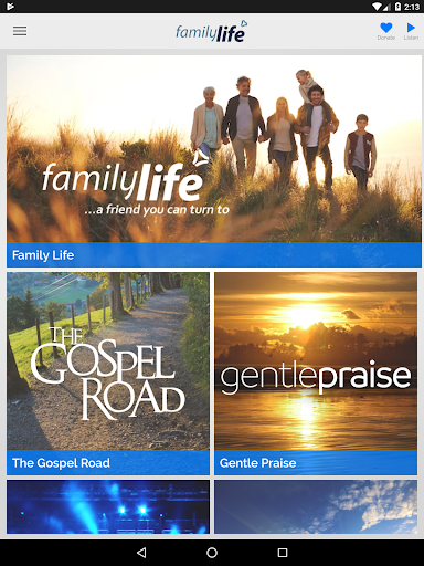 The Family Life Now app gives you 24/7 access to all of our music streams. Listen to Gentle Praise, Resound, The Gospel Road, and our main "AC" station. Plus, get the latest podcasts, Daily Verses and events.