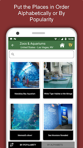 Visit incredible zoos that are homes for rare birds and animals species. The goal of wildlife conservation is to ensure that rare species will be safe for future generations. Famous Zoos Travel & Explore is an app that gives you knowledge about Zoos around the world. The app gives you details about categories of Zoos under it, if any. The app provides information about various beautiful, extensive Zoos, both country wise and city wise. You can sort the Zoos based on popularity and alphabetically.