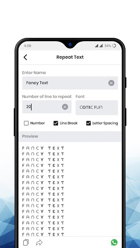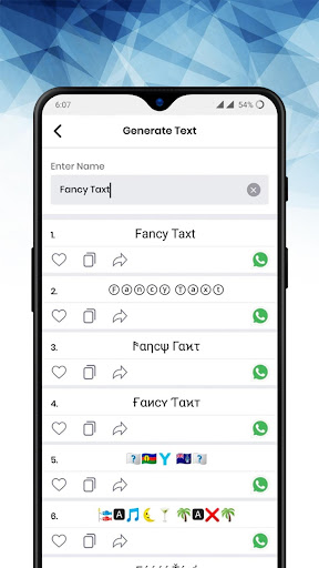 You can use the Generate Text section to create lots of different styles of text with different fonts which can be later used on any social networks. In this section, you can also do favorite your generated text and view it in favorites. Along with copy and share text, you can directly share generated text on WhatsApp.