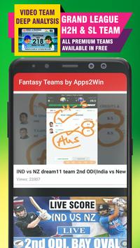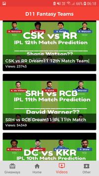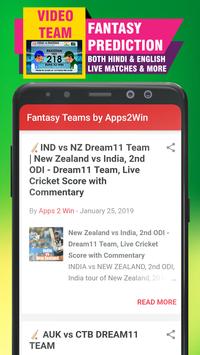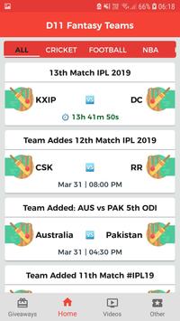 D11 Fantasy Teams by Apps2Win are not just providing teams for fantasy matches also give Video Tips, Tricks, Captain & Vice captain Poll for best accuracy in selection, Famous matches Live Score with Commentary, NEWS & Giveaway with Grand League Team for all famous matches i.e. #IPL12 Team, #WorldCup Team for apps i.e #Dream11 Team, #Fantain Team, #MyExpert11 Team, #Halaplay Team, #Playerzpot Team, #MyTeam11 Team, etc with the help of Interactive Video Explanation & also in the text format of each match.