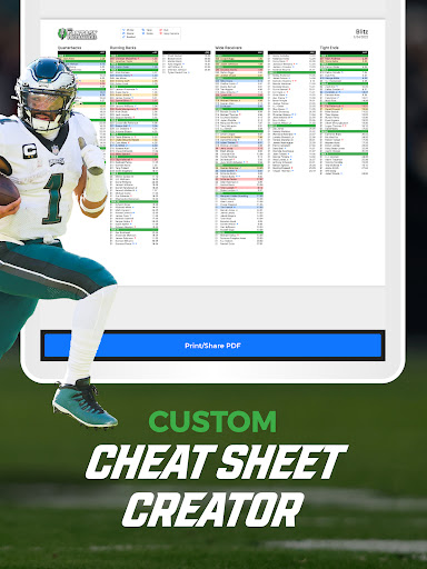 Customizable PDF cheat sheets integrated with your custom scoring settings and roster. Customize markers, expand or collapse details, and more. An essential tool for every draft.