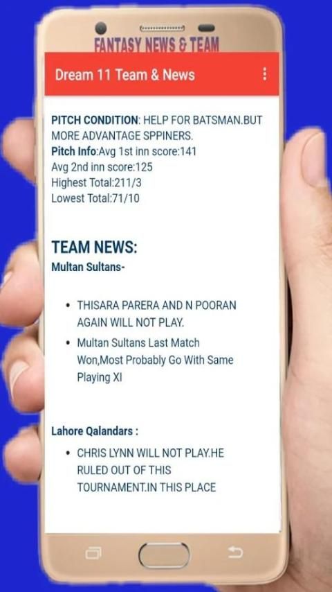 1.Best app for Dream 11,My team11,playerzpot and halaplay users to get Latest Updates on All Cricket Matches.