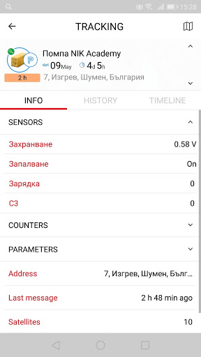 Tracking mode. Monitor precise location and parameters received from a particular unit.
