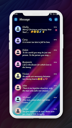 sms app: https://goo.gl/VCJVCI, getting this cool and free personalized theme to make your One Sms app more lovely and colorful. There are more interesting themes, emojis and stickers waiting for you.
