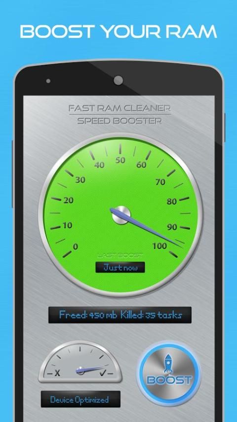 With just one tap on the 'boost' button you can boost your phone speed and instantly clean your ram memory.