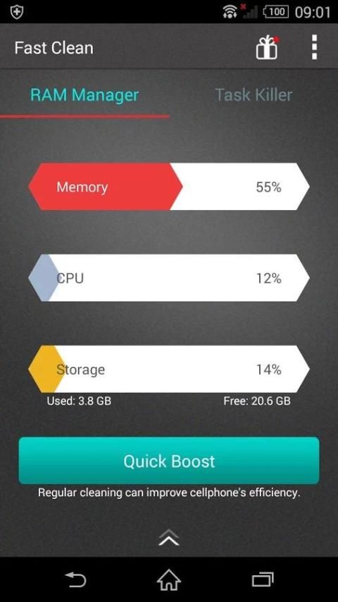 Fast Cleaner RAM Booster is an acceleration and optimizer free and new tool wich kills tasks automatically, speeds up your device, manage app and save battery.