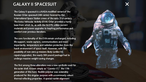Many different Faster Than Light characters pop out at you with interactivity, animation and sound! Touch the arrow in the lower right corner to read the backstory on the character.