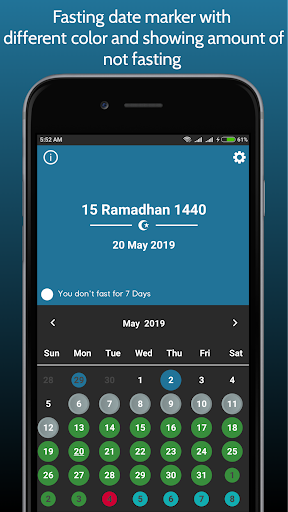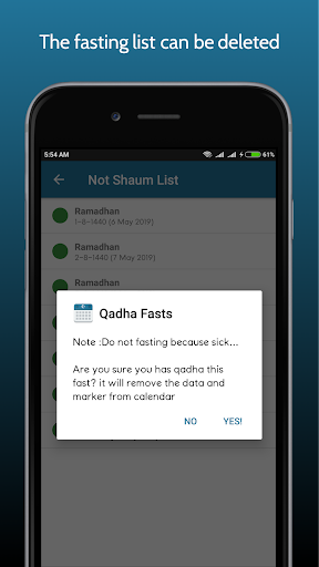☪ No Fasting List (List of times you did not fast will appear after you mark the calendar)