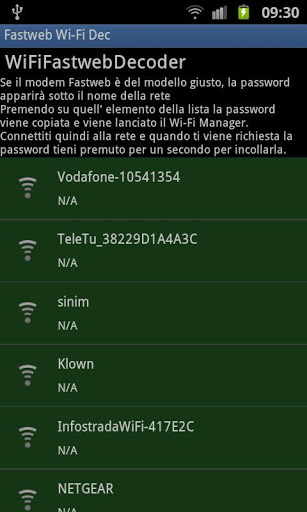 Quest39; applicazione calcola le password di defaulte solo quelle del Wireless alcuni modem pirelli Fastweb.Simile a Fastweb Alice wifi recovery ma orientata unicamente ai modem FastwebGratuitaDunque se avete un contratto fastweb cambiate la password di default del wirelessse proprio non volete cambiare gestore :