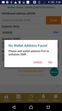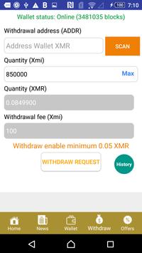 Note: This app uses the unit Xmi the smallest unit of Monero instead of Monero (1 XMR = 10.000.000 xmi)