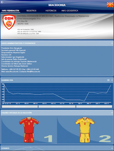 Full and detailed information about soccer federations around the world (over 350), of FIFA and Non-FIFA, classified by confederations. Including administrative data, graphic info like flag, uniforms, historical of local tournaments, records of tournaments internationals of clubs and national team honours. Statistics and matches of National team since 1872 up to date, geographic data and much more.