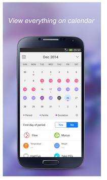 * View your current and future period dates, ovulation and fertile days, your moods and your symptoms in a simple month-view calendar.