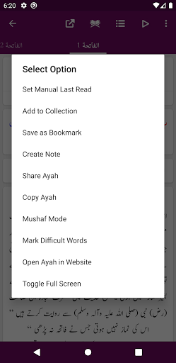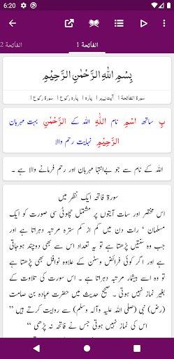 - Mushaf Mode: Recite Quran with Translation (Tarjuma) or Tafseer
