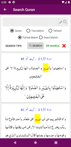 - Advance Search functionality in Quran, Translation (Tarjuma) and Tafseer