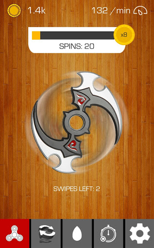 You have 5 blows to set the best spin you can. Wait for it to stop and get the best rewards! Upgrade your spinner, challenge your friends and beat the best records!