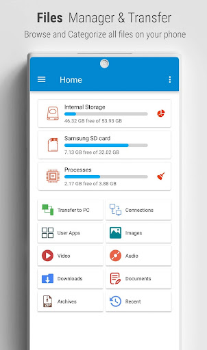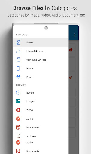 File Manager and File Explorer helps you explore files by categories e.g. images, videos, documents, archives, apps. It helps you categorize files into categories and manage them in a second.