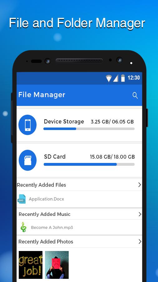 A File Manager is an Best application for Mobile File brower.Which is provide best user interface and performed common operation on file or group of files and folders.