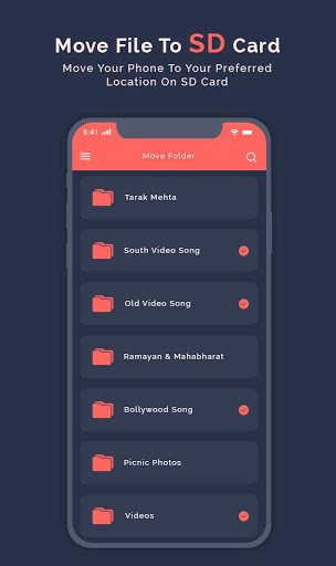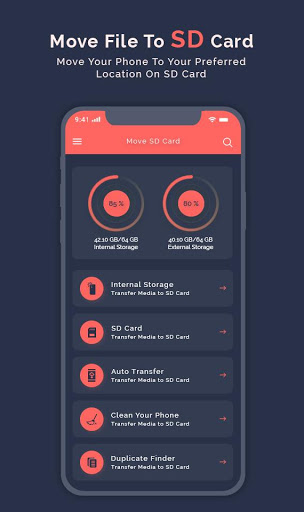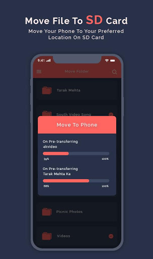 Get the all new and the most advanced Move To SD Card App which allows you to Move Files To SD Card as well as Move App To SD Card. Move your Photos, Videos, Musics, Zip Files, and all Other Downloads from your Phone Memory to SD card. You no longer have to worry about low Internal Memory.