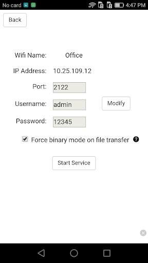 Support to start ftp service, convenient to transfer of files between mobile phone and computer