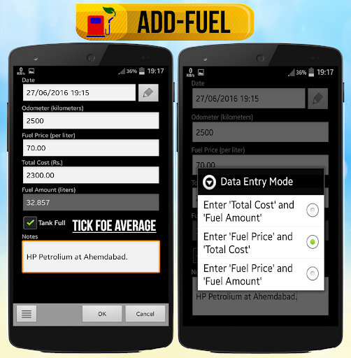• Enter Fuel Price and Total Cost,FillFuel Log will calculate Fuel Amount