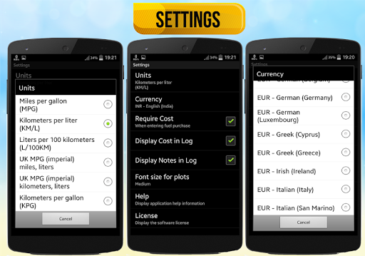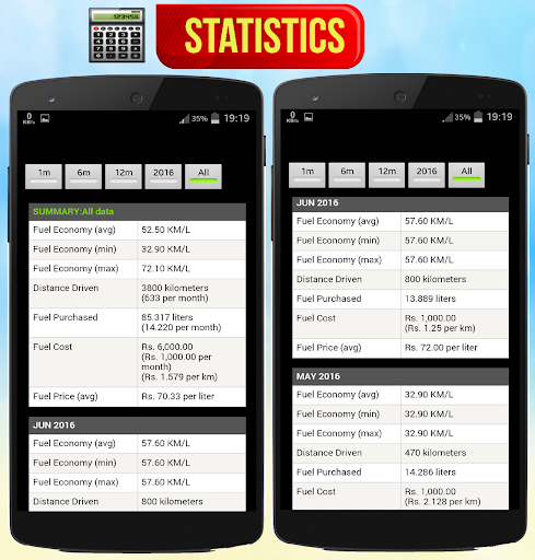 The app provides statistics as total and average number of fill-ups, fuel costs and mileage in a nice-looking.- Multiple settings available to track your fill up (kilometer, mile, liter, gallon (US), gallon (UK), km/l, l/100kms, mpg(US), mpg(UK))
