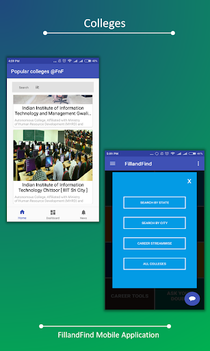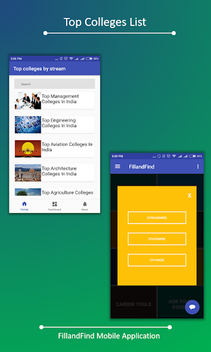 FillandFind.com android app for all the people to apply, compare and analyze colleges on various parameters. This is a platform where a student can directly connect with an institute/university/college to fetch the information about it in all the specific aspects one can be looking for in his/her dream.