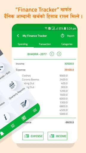 ७) 'My Finance Tracker' मार्फत दैनिक आम्दानी खर्चको हिसाब राख्न ।**