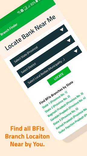 Branches/ATMs of banks and financial institutions to be found according to province, district, metropolis, sub-metropolis, municipality, village municipality.