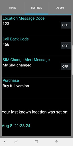 - If the device can't detect your current location your last known location with its time and date will be sent instead (the app will periodically check your location every half hour).