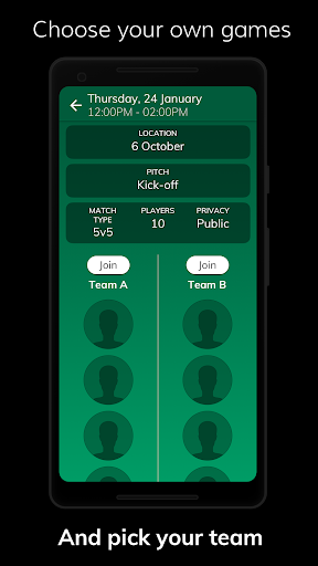 • Join: Join any game that has been created by anyone and go play whenever you want to. Pick the one that suits you most and step out on the pitch to show them how it’s done.