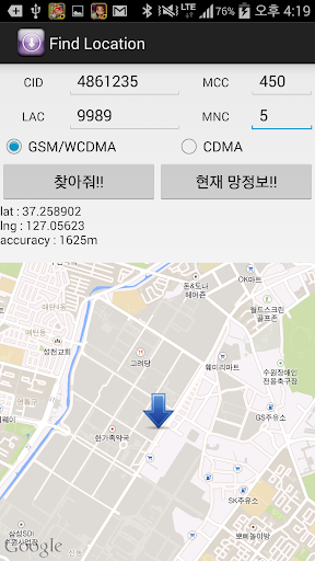 Cell 정보를 알고 있을때 (MCC MNC CID LAC)