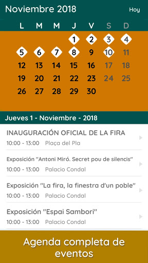 Infórmate: con la agenda geolocalizada sabrás en todo momento dónde y cuándo se realizan actos, actividades y talleres, así como información relevante en forma de notificaciones, si hay algún cambio en los horarios o un aviso de seguridad importante.