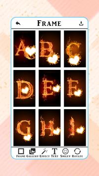 Fire Text Photo Editor has English letter fire frames. You can add your photo into fire text frames.