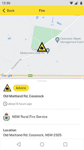 The app shows information and warnings about bush fires and floods across NSW, using information directly from emergency services.