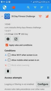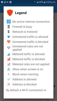 protects your personal information from being sent to the Internet. Firewall allows you to create filter rules based on IP address, host name or domain name. You can allow or deny only specific connections of an app. All you need to do is just press Allow or Deny button.