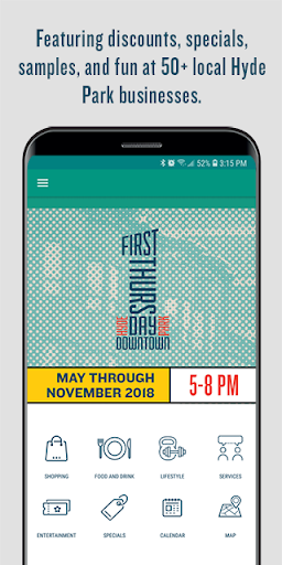 Enjoy Hyde Park’s FIRST THURSDAY event with this convenient app. Browse participating local businesses by type, offer, location, and more – and share with your friends!