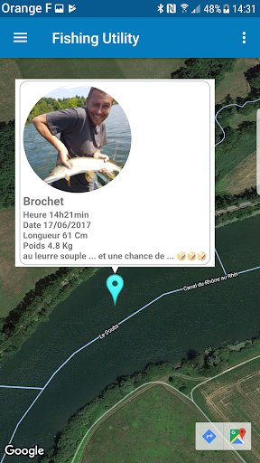 * Thanks to GPS geolocation all your fishing spots and therefore your fish on the same map, a good clue to locate these best fishing spots, the best areas at the end of the year once the fishing log has been rigorously completed.
