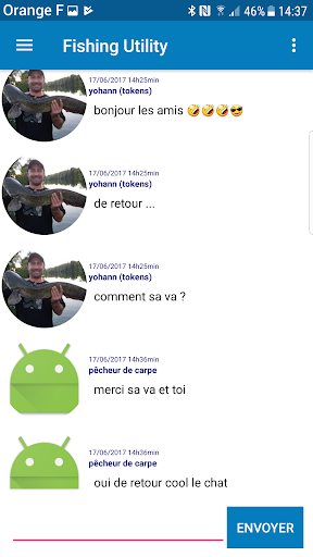 * Publish the photo of your fishing fish on this application, so that other fishermen see your beautiful fish and only if you wish a social network, but also discover their publications, the fish of other fishermen and interact thanks to the comments on the photo of fish which gives a friendly touch to this application between fishermen with an integrated social chat, a real community of fishermen who share their passion.