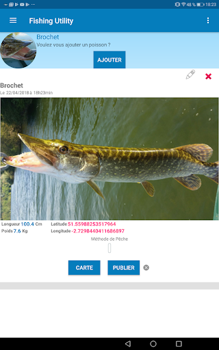 * Practice with this fishing logbook learn new techniques, new baits for hard-hitting carp fishing, new baits or new lures for example thanks to other fishermen who share their knowledge and materials on this application with their publication of fish, chat or community comments.
