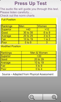 Fit App will provide you with the norm charts for each test helping you set your next fitness goal and monitors your progress along the way.