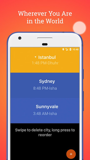 The neat and user-friendly interface of this app allows you to get prayer-time information about your current location easily. If you wish, you can also add other cities in the world and get prayer time information about those locations as well.