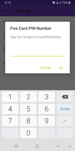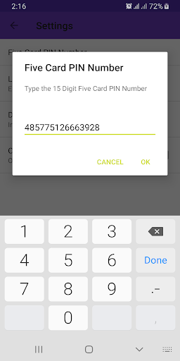 * Five Card PIN Number will be stored in your device only. we are not allowing to read by others.