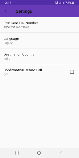 Five Card Dialer du Application will help you to make international calls using pre-configured Five Card number.