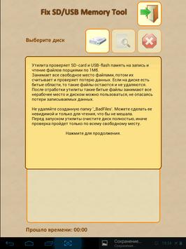 The utility checks the SD card and USB flash memory for writing and reading files in 1Mb chunks.