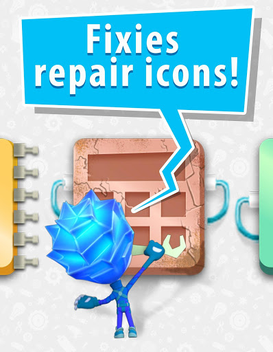 The Fixies - what do you think they are doing in your mobile? Fixing photo pictures? Fixing cars? No 😄 They will live in your cell phone and fix icons using their tiny tools🔧Every Fixie has his own Pack-o-mat - a cool toolbox to remove any damage inside your devices.