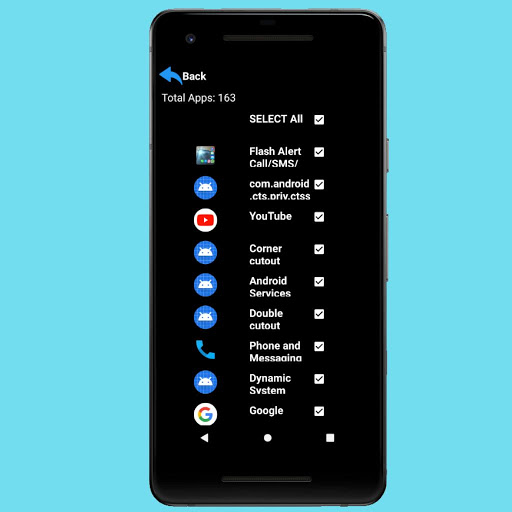 ✔ Choose the applications that will blinks the flash and deactivate the flash alert of the Apps by sliding the button to "off".