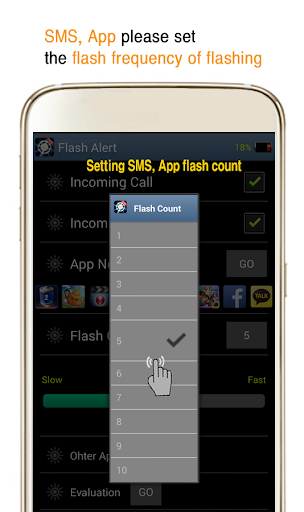 Flash Alert operate When receiving Incoming calls, text-message(SMS), SNS such as Facebook, twitter