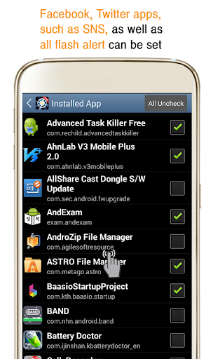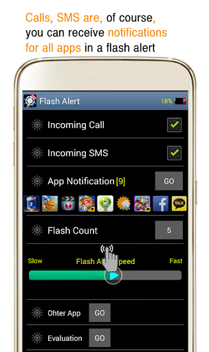 Incoming calls, text-message(SMS), SNS, all app such as a notification when receiving a flash alert operate.