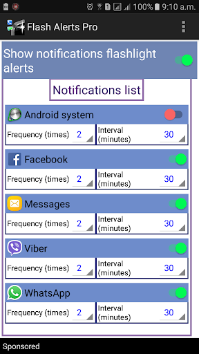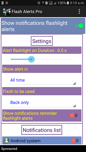 - Apps that Flash Alerts Pro will blink for their notification, and also select a separate settings for every app