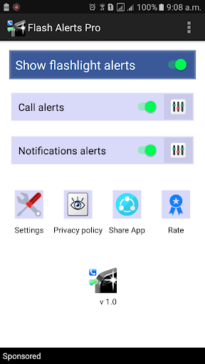 This great app can enhance your productivity and life style , now you got a new way to be notified about anything you chose, now you have sound, vibration, and Flash Alerts Pro added light notification , and in a very customizable way.